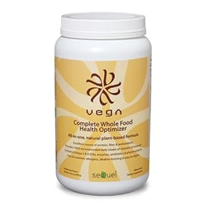 Vega Whole Food Health Optimizer Made exclusively from natural plant-based whole foods, Vega Whole Food Health Optimizer is nutritionally complete, alkaline and easy to digest. Formulated by Brendan Brazier, vegan, professional Ironman triathlete and best-selling author on performance nutrition, Vega Whole Food Health Optimizer is a synergistic collection of plant-based superfoods. Each serving of Health Optimizer is power-packed with nutrition, yet only has 240 calories! Here;39;s what sets Vega Whole Food Health Optimizer apart: Broad Spectrum Protein 40% of calories made up of protein from five sources, ensuring a complete, balanced amino acid profile 30% of protein is raw and alkaline for easy digestion Essential Fatty Acids 25% of calories made up of naturally occurring EFAs As much Omega-3 per serving as 6 oz of wild salmon Quality Carbohydrates 35% of calories made up of low glycemic complex carbohydrates for enduring energy Contains no sugar or artificial sweeteners Full of Fabulous Fiber 15g of fiber per serving—an amazing 60% RDI Helps balance blood sugar, reduce serum cholesterol and improve digestion/elimination Other Key Components ChlorEssence detoxifies and supports immune system MacaSure increases energy and reduces stress Mixed berry complex provides antioxidant protection Digestive enzymes and probiotics work together to improve digestion and gastrointestinal function 100% RDI of vitamins and minerals Use Vega Complete Whole Food Health Optimizer to help: Promote optimal h