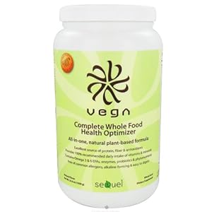 Vega Whole Food Health Optimizer Made exclusively from natural plant-based whole foods, Vega Whole Food Health Optimizer is nutritionally complete, alkaline and easy to digest. Formulated by Brendan Brazier, vegan, professional Ironman triathlete and best-selling author on performance nutrition, Vega Whole Food Health Optimizer is a synergistic collection of plant-based superfoods. Each serving of Health Optimizer is power-packed with nutrition, yet only has 240 calories! Here;39;s what sets Vega Whole Food Health Optimizer apart: Broad Spectrum Protein 40% of calories made up of protein from five sources, ensuring a complete, balanced amino acid profile 30% of protein is raw and alkaline for easy digestion Essential Fatty Acids 25% of calories made up of naturally occurring EFAs As much Omega-3 per serving as 6 oz of wild salmon Quality Carbohydrates 35% of calories made up of low glycemic complex carbohydrates for enduring energy Contains no sugar or artificial sweeteners Full of Fabulous Fiber 15g of fiber per serving—an amazing 60% RDI Helps balance blood sugar, reduce serum cholesterol and improve digestion/elimination Other Key Components ChlorEssence detoxifies and supports immune system MacaSure increases energy and reduces stress Mixed berry complex provides antioxidant protection Digestive enzymes and probiotics work together to improve digestion and gastrointestinal function 100% RDI of vitamins and minerals Use Vega Complete Whole Food Health Optimizer to help: Promote optimal h